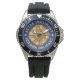 Has heft and feel of expensive stainless steel quartz wrist watches. Solid construction and good looks. Although it had a really top quality rubber strap, I substituted a stainless steel "Shark" style mesh strap, which I think is the most comfortable strap available. Perfect. True colors of original image. Clear, crisp image precisely aligned and spaced.