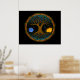 A cosmic Astral Tree of Life's limbs and roots branch outwards symbolising the interconnectedness or relation between all of creation. In the background, the Sun and Earth float in a sea of stars. Decorative line work represents layers of reality & experience. Vines wrap around the wooden frame 12 times symbolising the twelve months, astrology signs of the zodiac, and celestial bodies of our solar system; Sun, Moon, Mercury, Venus, Earth, Mars, Jupiter, Saturn, Neptune, Uranus, Pluto, Eris.