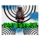 Astro art, aspiral around, blue clouds smoked representing that the character itself is in heaven. Centralized graffiti sentence "That is real?"