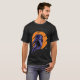 I give wanted to give this a 4 instead of a 5 because these Basic DARK T0shirts run unexpectedly SLIM or Narrow. Which is great if you do not have a potbelly, but I have a paunch. It isn't the shirt's fault that I've got a beer belly. The design and shirt itself is a quality cotton shirt. The color is more of a deep purple, but still a very pretty color. The Basic DARK T-shirts run a bit SLIMMER than the Basic Ts. The neck is a fraction narrower (or seems to be narrower) also. I'm a paunchy middle-aged woman and my neck is 12 inches (31cm) thick and the neckline fell about the same as in the photo of the man, and I had the desire to tug it a bit. So if you're a thick necked man or like loose shirts, be aware these are slimmer shirts. Once I get rid of my lockdown paunch it'll look great. The shirt washed well in cold water with no apparent bleeding. We don't have a dryer, so it hung dry. Did not shrink. Love the colors and the design. The design looks smaller on my shirt than it does on the model on-line. But still, it looks good on the shirt. The printing looks as it does on the model, just the size seems fractionally smaller. Washed garment in cold water, hung dry and design appeared unaffected.