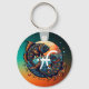 Horoscope Pisces keychain. Ai art depicting a beautiful colourful mystical fish swimming in different direction to symbolise fluid movement between fantasy and reality. Blue, orange, black bright and colourful astrology artwork. Pisces for people born between February 19 to March 20.