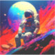 This sticker has an astronaut on it.