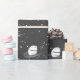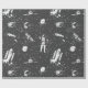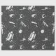 Monochrome graphic of aerospace elements (astronaut, satellite, Saturn, spacecraft), seamless repeat pattern
