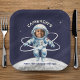 Blast off into a new year with this first trip around the sun birthday party paper plate for kids. This design is lets you place a photo of your child's face inside the astronaut helmet while highlighting their journey through time and space. Perfect for children of all ages, it brings a playful cosmic twist to your celebration.