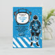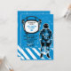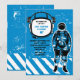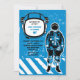 A realistic, grunge invitation featuring an astronaut and a helmet "frame" to emphasise your child's name and age. The card is easy to customise with your wording, font, font colour and choice of six paper types.