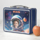 Need birthday party ideas for your boy? This spectacular photo personalized lunch box with an astronaut and space theme, featuring an illustration of an astronaut in deep space with a photo template on the visor, floating among planets, is just the ticket. Celebrate your budding astronaut with this planets and deep space theme that will make him happy, if he is crazy about all things planets, rockets, space and astronaut suits. The perfect birthday gift for a boy or girl, or as a Christmas or back to school.