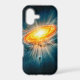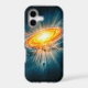 Protect your essential everyday technology while carrying a breathtaking piece of the cosmos with you everywhere you go. The vertical format of this premium tough phone case acts as the absolute perfect canvas for this epic sci-fi artwork. Perfectly positioned on the back of your device, the massive, glowing golden spiral galaxy beams its light down upon a tiny, free-floating astronaut silhouette, turning your phone into a striking, pocket-sized window to the universe.