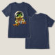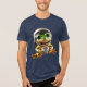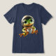 Whimsical green frog in a space helmet cups steaming coffee, blending cosmic charm with cozy cafe vibes. Bold colors and glossy helmet create playful wearable appeal.