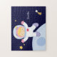 Custom jigsaw puzzle features a cool space theme. Personalise with your little girl's name, monogram, initials, or text of your choice for a one of a kind gift.