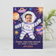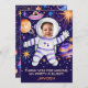 This design features an astronaut floating in space surrounded by planets, the sun, a UFO, galaxies and lots of stars on a dark purple background. In the astronauts helmet is a spot for you to add your own photo. it is ideal for a space themed birthday. You can customise the message and the name. On the back of the card is a matching galaxy pattern. See the whole matching collection.