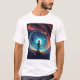 Add a touch of cosmic style to your wardrobe with this vibrant T-shirt. Featuring an eye-catching design of a person standing amidst a swirling galaxy, the bold colours of blue, purple, and orange create a captivating nebula scene. Perfect for sci-fi enthusiasts and dreamers alike, this T-shirt combines fashion with imaginative art, making it a standout piece in any collection.