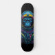 skateboard illustration of a monkey wearing headphones in neon style, black light, made by AI