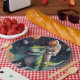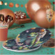 Make every celebration special with these durable, customisable paper plates, featuring an astronaut on a dinosauar in space, sturdy construction, and disposable convenience—perfect for birthday parties.