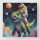 Astronaut on Dino in Space Square Wall Clock