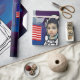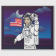 The Astronaut On Moon Outer Space Boy design features a photo of your little astronaut in full space gear, standing on the moon with the American flag in the background. The design also includes planets and stars, giving it a true outer space feel.