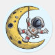 Add a touch of cosmic charm to your belongings with this sticker featuring an adventurous astronaut dangling from the top of a crescent moon. With their feet braced against the bottom curve and a cheerful wave, this sticker captures the wonder of exploration. Perfect for laptops, water bottles, journals, or any surface that could use a cosmic upgrade. This sticker is ideal for space enthusiasts, dreamers, and explorers of the galaxy. Comes in sets of 6 or 20.