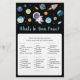 These elegant What's In Your Purse cards are a great way to kick off the fun at your Baby Shower & guaranteed to be a huge hit! Simply pass them around during the Baby Shower where guests will have fun going through their purses and checking off items that they have from the list. The person with the most points wins! This adorable design features an adorable astronaut, rocket ship and colourful planets.
