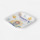 Serve your space party treats on these fun astronaut space-themed square paper plates! Featuring a rocket ship soaring through the stars and planets, these plates can be personalised with your child’s name and age. Perfect for any space birthday celebration, these durable plates are both practical and themed, adding a unique touch to your outer space party. Make mealtime a blast at your next space adventure!