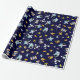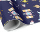Astronaut theme cartoon in space with repeating images of astronauts, moons, planets with rings, satellites, oxygen canisters, stars, lightning bolts, asteroids and rocketships.