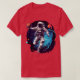 I give wanted to give this a 4 instead of a 5 because these Basic DARK T0shirts run unexpectedly SLIM or Narrow. Which is great if you do not have a potbelly, but I have a paunch. It isn't the shirt's fault that I've got a beer belly. The design and shirt itself is a quality cotton shirt. The color is more of a deep purple, but still a very pretty color. The Basic DARK T-shirts run a bit SLIMMER than the Basic Ts. The neck is a fraction narrower (or seems to be narrower) also. I'm a paunchy middle-aged woman and my neck is 12 inches (31cm) thick and the neckline fell about the same as in the photo of the man, and I had the desire to tug it a bit. So if you're a thick necked man or like loose shirts, be aware these are slimmer shirts. Once I get rid of my lockdown paunch it'll look great. The shirt washed well in cold water with no apparent bleeding. We don't have a dryer, so it hung dry. Did not shrink. Love the colors and the design. The design looks smaller on my shirt than it does on the model on-line. But still, it looks good on the shirt. The printing looks as it does on the model, just the size seems fractionally smaller. Washed garment in cold water, hung dry and design appeared unaffected.