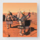 Astronauts Setting Up Weather Equipment On Mars. Square Wall Clock
