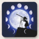 Novelty Astronomer's Moon Phase Drinks Coaster showing a young astronomer observing the moon, plus 12 moon phases.