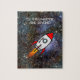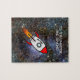 The star-filled background for this puzzle is a striking image of the Lagoon nebula created by ESO's VISTA telescope in Chile. [Nebula image: ESO/VVV Acknowledgement Cambridge Astronomical Survey Unit] Superimposed on this is a red rocket which you can personalise with a name. Additional editable text reads TO THE UNIVERSE AND BEYOND.