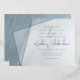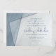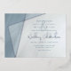 This geometric style wedding invitation is simple but elegant with a dusty blue / grey colour theme with calligraphic elements, asymmetric frame and custom text accents in real silver foil, and a marble texture appearance - by katz_d_zynes