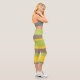 Asymmetric Stripes Lines Brown Yellow Green Capri Leggings