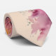 This soft yet striking tie features an asymmetrical watercolor floral design in warm orange and violet hues, set against a pastel blush background. A vertical botanical accent blooms along one side, creating movement and visual interest that breaks from traditional symmetry.