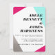 Asymmetrical Hot Pink Silver & Turquoise Wedding Invitation