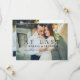 At last! Announce your wedding in style with these elegant horizontal save the date announcement cards that feature two of your favourite engagement photos and wording on the front and back of the card that can be personalised with all of the important details. A modern, clean, and timeless design. Note, the text colour of the photo overlay can be changed to white or another colour that contrasts the photo.