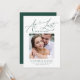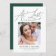 Share the news of your engagement with these simple and elegant engagement announcements! "At Last" is featured in a beautiful forest green script with "We're Engaged!" displayed below. Personalise the announcements by adding your square photo, names, and details below.