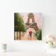 Eiffel Tower - Paris France, and Lovers under the red umbrella - acrylic painting art "At the Eiffel Tower" & designed with hour & minute dials on any Zazzle Wall Clocks.