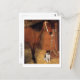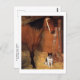 A fine art postcard with the painting, At the Stables, Horse and Dog (1861), by the French artist Edgar Degas (1834-1917). A portrait of a chestnut horse and a white boxer dog in a stable stall.