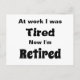 At work I Was Tired, Now I’m Retired Postcard
