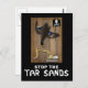 A duck mount featuring an oiled, dead Mallard duck, earth moving equipment, and a skull and crossbones. Text reading "STOP THE TAR SANDS" also appears. Woe to any waterfowl landing in a toxic tailings pond in Alberta where a extremely viscous petroleum is extracted from tar sands (aka oil sands) with horrible environmental effects. The Alberta tar sands consist of heavy crude oil mixed with sand, clay and bitumen. Extraction entails burning natural gas to generate enough heat and steam to melt the oil out of the sand. As many as five barrels of water are needed to produce a single barrel of oil. Every day millions of gallons of water are contaminated with chemicals, including arsenic, copper, lead and zinc, to basically separate tar sands oil (called diluted bitumen) from the sand. But the water is so contaminated after this process that they have to store it in toxic sludge pits called tailings ponds. It is estimated that 3 millions gallons of contaminated water leaks from tailing ponds into Alberta's Athabasca River, and the surrounding landscape, every day. Please say no to tar sands.
