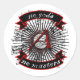 grunge style Atheist "A" on a starburst background with the motto "No Gods, No Masters" on banners above and below, done in basic black and red.