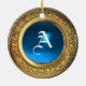 Elegant 3D blue sapphire gem stone monogram design with gold enamel Art Nouveau Miniature.: Athena .Artistic Holiday Christmas ornament ,