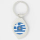 The national flag of Greece acts as a background for the Athens coat of arms which is infused into a circle shape.