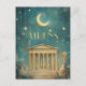 This travel postcard is inspired by the landmarks of Athens, Greece. This postcard features a magical night theme.