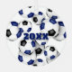 This fun soccer themed ornament is printed on the front and back with the image of a cluster of varied size blue, black and white soccer balls - customise with the athlete's name on the front and commemorative year on the back - by katz_d_zynes