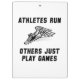 Check out this funny custom design on tees, shirts, mugs, pyjamas, gifts and other apparel. Runners, triathletes and duathletes know that real athletes run while all others are just playing games.