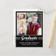 This sporty graduation announcement postcard features a 4-photo layout and fun athletic design. On the front of the black and white announcement, choose four of your favourite photos for the template -- three smaller photos and one large vertical photo. Add the graduate's name, graduation year, and school to the bottom. On the back of the graduation postcard, you can add a custom message to recipients and grad party details.