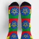 Show your support for Ethiopia with these athletic crew socks featuring the flag of Ethiopia. The bold green, yellow, and red stripes, along with the blue circle and star in the centre, represent Ethiopia's vibrant heritage and unity. Whether you're hitting the gym, playing sports, or just enjoying an active day, these socks combine style and function, ensuring you perform at your best while displaying your Ethiopian pride.