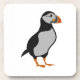 A cute Atlantic Puffin standing illustrated from the side view. The head of this pretty bird is turn to show off its beak marking