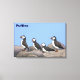 Puffins at rest on the rocks. Customisable text reading, "Puffins" also appears.