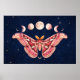 Atlas Moth Celestial Moon Phase | Boho Lunar Art Poster