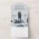 Invite your guests to your big day and show off that amazing engagement photograph you had taken all at once with this vertical layout all in one wedding invitation. Black text stands out against lighter photos but can be changed to white using the customizer. The all in one design includes a handy tear off RSVP postcard with pre-printed return address, all you have to do is add the postcard stamp. Edit all of the text of this budget friendly all in one invitation for a custom, simple classic invitation that will stand the test of time. Create each invitation one at a time and add your guest addresses in the customizer OR clear that template text and handwrite or add labels to the invitations before mailing them out.