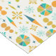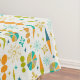 Put some zing into your dining room decor with this funky atomic age mid century tablecloth! This design features retro abstract mcm shapes in orange, turquoise, avocado green, blue, and tan, on a light cream background.